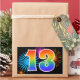 This fun, vibrant sticker design features a colourful celebratory fireworks inspired pattern, along with the number "13" having a multicolored rainbow inspired gradient pattern, on a black coloured background. Stickers like this might be used at a party celebrating somebody’s thirteenth birthday, or perhaps for a couple’s thirteenth wedding anniversary, or some other 13th event. [~Z0000324]