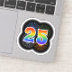 This fun, vibrant sticker design features a colourful bursting celebratory fireworks inspired pattern, along with the number "25" having a multicolored rainbow like spectrum or gradient pattern. A sticker like this might be fun to use when celebrating somebody’s twenty fifth birthday, or perhaps a couple’s twenty fifth wedding anniversary, or some other 25th event. [~Z0000362]