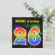 This fun, vibrant birthday party invitation design features a colourful pattern inspired by bursting celebratory fireworks, along with the number "26" featuring a multicolored rainbow like spectrum or gradient pattern. The name on the front can be customised. The back features customisable details about the party. Birthday party invitations like this might be sent to invite guests to a birthday party being held to celebrate somebody’s twenty sixth birthday. [~Z0000337]