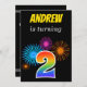 Fun Fireworks + Rainbow Pattern "2" Birthday # Invitation