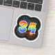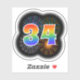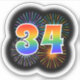 This fun, exciting sticker design features a colourful pattern inspired by bursting celebratory fireworks, along with the number "34" featuring a multicolored rainbow inspired spectrum or gradient pattern. A fun sticker like this might be fun to use when celebrating somebody’s thirty fourth birthday, or perhaps a couple’s thirty fourth wedding anniversary, or some other 34th event. [~Z0000362]