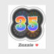 This fun, exciting sticker design features a colourful bursting celebratory fireworks inspired pattern, along with the number "35" featuring a multicolored rainbow inspired spectrum or gradient pattern. An exciting sticker like this might be used when celebrating somebody’s thirty fifth birthday, or perhaps a couple’s thirty fifth wedding anniversary, or some other 35th event. [~Z0000362]