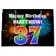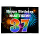 This fun, vibrant gift bag design features a colourful celebratory fireworks inspired pattern, along with the number "37" having a multicolored rainbow like gradient pattern, on a black coloured background. It also features a personalised name and event message, such as a birthday greeting. A colourful and joyful gift bag like this might be used when giving a gift or present to somebody who is celebrating their thirty seventh birthday. [~Z0000328]