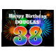 This fun, vibrant gift bag design features a colourful pattern inspired by celebratory fireworks, along with the number "38" having a multicolored rainbow like gradient pattern, on a black coloured background. It also features a personalised name and event message, such as a birthday greeting. A colourful and joyful gift bag like this might be used when giving a gift or present to somebody who is celebrating their thirty eighth birthday. [~Z0000328]