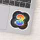 This fun, vibrant sticker design features a colorful pattern inspired by bursting celebratory fireworks, along with the number "3" having a multicolored rainbow inspired spectrum or gradient pattern. A fun sticker like this might be used when celebrating somebody’s third birthday, or perhaps a couple’s third wedding anniversary, or some other 3rd event. [~Z0000362]