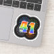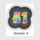 This fun, vibrant sticker design features a colourful pattern inspired by bursting celebratory fireworks, along with the number "41" having a multicolored rainbow like spectrum or gradient pattern. An exciting sticker like this might perhaps be used when celebrating somebody’s forty first birthday, or perhaps a couple’s forty first wedding anniversary, or some other 41st event. [~Z0000362]