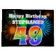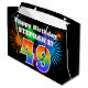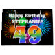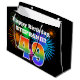 This fun, vibrant gift bag design features a colourful pattern inspired by celebratory fireworks, along with the number "49" having a multicolored rainbow like gradient pattern, on a black coloured background. It also features a customisable name and event message, such as a birthday greeting. A colourful gift bag like this might be used when wrapping a gift or present that is being given in celebration of somebody’s forty ninth birthday. [~Z0000328]