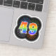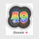 This fun, vibrant sticker design features a colourful bursting celebratory fireworks inspired pattern, along with the number "49" featuring a multicolored rainbow inspired spectrum or gradient pattern. A sticker like this might be used when celebrating somebody’s forty ninth birthday, or perhaps a couple’s forty ninth wedding anniversary, or some other 49th event. [~Z0000362]