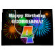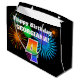 This fun, vibrant gift bag design features a colourful pattern inspired by celebratory fireworks, along with the number "4" having a multicolored rainbow inspired gradient pattern, on a black coloured background. It also features a customisable name and event message, such as a birthday greeting. A gift bag like this might be used to wrap a present or gift being given in celebration of somebody’s fourth birthday. [~Z0000328]