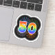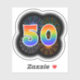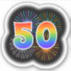 This fun, exciting sticker design features a colourful bursting celebratory fireworks inspired pattern, along with the number "50" having a multicolored rainbow inspired spectrum or gradient pattern. A sticker like this might be used when celebrating somebody’s fiftieth birthday, or perhaps a couple’s fiftieth wedding anniversary, or some other 50th event. [~Z0000362]