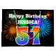 This fun, vibrant gift bag design features a colourful celebratory fireworks inspired pattern, along with the number "51" having a multicolored rainbow like gradient pattern, on a black coloured background. It also features a personalised name and event message, such as a birthday greeting. A gift bag like this might be used to wrap a present or gift being given in celebration of somebody’s fifty first birthday. [~Z0000328]