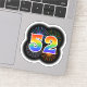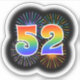This fun, exciting sticker design features a colourful bursting celebratory fireworks inspired pattern, along with the number "52" having a multicolored rainbow inspired spectrum or gradient pattern. An exciting sticker like this might perhaps be used when celebrating somebody’s fifty second birthday, or perhaps a couple’s fifty second wedding anniversary, or some other 52nd event. [~Z0000362]