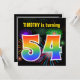 This fun, vibrant birthday party invitation design features a colourful pattern inspired by bursting celebratory fireworks, along with the number "54" featuring a multicolored rainbow like spectrum or gradient pattern. The name on the front can be customised. The back features customisable details about the party. Birthday party invitations like this might be sent to potential attendees for a birthday party being held to celebrate somebody’s fifty fourth birthday. [~Z0000337]
