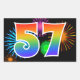 Fun Fireworks + Rainbow Pattern "57" Event Number Rectangular Sticker