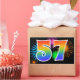 This fun, vibrant sticker design features a colourful celebratory fireworks inspired pattern, along with the number "57" featuring a multicolored rainbow inspired gradient pattern, on a black coloured background. Stickers like this might be used at a party celebrating somebody’s fifty seventh birthday, or perhaps for a couple’s fifty seventh wedding anniversary, or some other 57th event. [~Z0000324]