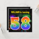 This fun, vibrant birthday party invitation design features a colourful pattern inspired by bursting celebratory fireworks, along with the number "58" featuring a multicolored rainbow inspired spectrum or gradient pattern. The name on the front can be personalised. The back features personalised details about the party. Birthday party invitations like this might be sent to invite guests to a birthday party being held to celebrate somebody’s fifty eighth birthday. [~Z0000337]