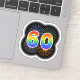 This fun, vibrant sticker design features a colourful bursting celebratory fireworks inspired pattern, along with the number "60" having a multicolored rainbow like spectrum or gradient pattern. A fun sticker like this might be fun to use when celebrating somebody’s sixtieth birthday, or perhaps a couple’s sixtieth wedding anniversary, or some other 60th event. [~Z0000362]
