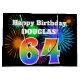 This fun, vibrant gift bag design features a colourful pattern inspired by celebratory fireworks, along with the number "64" having a multicolored rainbow inspired gradient pattern, on a black coloured background. It also features a customisable name and event message, such as a birthday greeting. A fun gift bag like this could be used when wrapping a present or gift being given in celebration of somebody’s sixty fourth birthday. [~Z0000328]