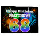 This fun, vibrant gift bag design features a colourful pattern inspired by celebratory fireworks, along with the number "68" having a multicolored rainbow like gradient pattern, on a black coloured background. It also features a personalised name and event message, such as a birthday greeting. A fun gift bag like this could be used when wrapping a present or gift being given in celebration of somebody’s sixty eighth birthday. [~Z0000328]