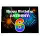 This fun, vibrant gift bag design features a colourful pattern inspired by celebratory fireworks, along with the number "6" featuring a multicolored rainbow inspired gradient pattern, on a black coloured background. It also features a personalised name and event message, such as a birthday greeting. A colourful gift bag like this might be used when wrapping a gift or present that is being given in celebration of somebody’s sixth birthday. [~Z0000328]