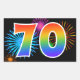 Fun Fireworks + Rainbow Pattern "70" Event Number Rectangular Sticker
