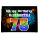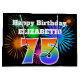 This fun, vibrant gift bag design features a colourful celebratory fireworks inspired pattern, along with the number "75" having a multicolored rainbow like gradient pattern, on a black coloured background. It also features a custom name and event message, such as a birthday greeting. A fun gift bag like this could be used when wrapping a present or gift being given in celebration of somebody’s seventy fifth birthday. [~Z0000328]