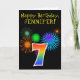 Fun Fireworks + Rainbow Pattern "7" Birthday # Card