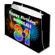 This fun, vibrant gift bag design features a colourful celebratory fireworks inspired pattern, along with the number "81" having a multicolored rainbow inspired gradient pattern, on a black coloured background. It also features a customisable name and event message, such as a birthday greeting. A gift bag like this might be used to wrap a present or gift being given in celebration of somebody’s eighty first birthday. [~Z0000328]