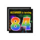 This fun, vibrant birthday party invitation design features a colourful bursting celebratory fireworks inspired pattern, along with the number "84" featuring a multicolored rainbow inspired spectrum or gradient pattern. The name on the front can be personalised. The back features custom details about the party. Birthday party invitations like this might be used to invite guests to a birthday party being held to celebrate somebody’s eighty fourth birthday. [~Z0000337]