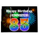This fun, vibrant gift bag design features a colourful celebratory fireworks inspired pattern, along with the number "85" having a multicolored rainbow inspired gradient pattern, on a black coloured background. It also features a customisable name and event message, such as a birthday greeting. A colourful gift bag like this might be used when wrapping a gift or present that is being given in celebration of somebody’s eighty fifth birthday. [~Z0000328]