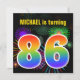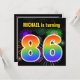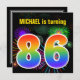 This fun, vibrant birthday party invitation design features a colourful bursting celebratory fireworks inspired pattern, along with the number "86" featuring a multicolored rainbow like spectrum or gradient pattern. The name on the front can be customised. The back features customisable information about the party. Birthday party invitations like this might be used to invite guests to a birthday party being held to celebrate somebody’s eighty sixth birthday. [~Z0000337]