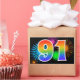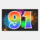 Fun Fireworks + Rainbow Pattern "91" Event Number Rectangular Sticker