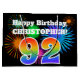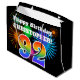 This fun, vibrant gift bag design features a colourful celebratory fireworks inspired pattern, along with the number "92" featuring a multicolored rainbow like gradient pattern, on a black coloured background. It also features a custom name and event message, such as a birthday greeting. A fun gift bag like this could be used when wrapping a present or gift being given in celebration of somebody’s ninety second birthday. [~Z0000328]