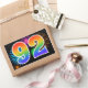 This fun, vibrant sticker design features a colourful celebratory fireworks inspired pattern, along with the number "92" featuring a multicolored rainbow inspired gradient pattern, on a black coloured background. Stickers like this could perhaps be given as a small gift while celebrating somebody’s ninety second birthday, or perhaps for a couple’s ninety second wedding anniversary, or some other 92nd event. [~Z0000324]