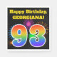 This fun, vibrant paper napkin design features a colourful pattern inspired by celebratory fireworks, along with the number "93" featuring a multicolored rainbow inspired gradient pattern, on a black coloured background. It also features a custom name and event message. Paper napkins like this could perhaps be used at a birthday party being held to celebrate somebody’s ninety third birthday. [~Z0000326]