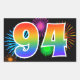 Fun Fireworks + Rainbow Pattern "94" Event Number Rectangular Sticker