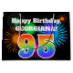 This fun, vibrant gift bag design features a colourful pattern inspired by celebratory fireworks, along with the number "95" having a multicolored rainbow inspired gradient pattern, on a black coloured background. It also features a custom name and event message, such as a birthday greeting. A colourful and joyful gift bag like this might be used when giving a gift or present to somebody who is celebrating their ninety fifth birthday. [~Z0000328]