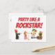 This fun and quirky birthday card features a hilarious vegetable band that's sure to make anyone smile. With a punky gherkin on the keyboard, a curly kale potato on the drums, a cool little lime rocking the guitar, and a fancy orange-haired potato on vocals, this card showcases the craziest, coolest, and most fun band ever! Perfect for music lovers and those with a sense of humour, this card adds an extra level of fun to any birthday celebration. The playful characters combined with the bold "Party Like a Rockstar" message make this a unique card choice for any rockstar in your life. Enjoy!