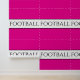 This sporty design features modern FOOTBALL text centred inside a wide white centre stripe highlighted with slender black pinstripes against bright pink background. The colours and text in this design can be personalised.