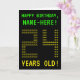 The front of this geeky, customisable birthday card design features the messages "HAPPY BIRTHDAY" and "24 YEARS OLD!", along with a personalised recipient name. The messages on the front have a look inspired by pixelated vintage video games. The digits of the large number "24" on the front consist of smaller sized digits "2" or "4", giving an ASCII art inspired look. The inside features a birthday greeting message that can be personalised. A nerdy style, customised birthday greeting card like this might be given to somebody celebrating their twenty fourth birthday. [~Z0000366]