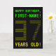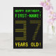 The front of this nerdy, personalised birthday card design features the messages "HAPPY BIRTHDAY" and "37 YEARS OLD!", along with a personalised recipient name. The messages on the front have a pixelated, old school video game style look. The digits of the large number "37" on the front are themselves made up of smaller sized "3" or "7" digits, giving an ASCII art inspired look. The inside features a birthday greeting message that can be edited. A geeky style, customisable birthday greeting card like this might be a fun way to send a birthday greeting message to somebody celebrating their thirty seventh birthday. [~Z0000366]