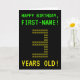 The front of this nerdy, personalised birthday card design features the messages "HAPPY BIRTHDAY" and "3 YEARS OLD!", along with a editable recipient name. The messages on the front have an appearance inspired by pixelated vintage/classic/retro video games. The number "3" on the front is itself made up of smaller sized "3" digits, giving an ASCII art inspired look. The inside features a birthday greeting message that can be customised. A geeky style, personalised birthday greeting card like this might be given to somebody who is celebrating their 3rd birthday. [~Z0000366]