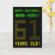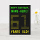 The front of this nerdy, personalised birthday card design features the messages "HAPPY BIRTHDAY" and "61 YEARS OLD!", along with a editable recipient name. The messages on the front have a look inspired by pixelated vintage computer games. The digits of the large number "61" on the front are themselves made up of smaller sized "6" or "1" digits, giving an ASCII art inspired look. The inside features a personalised birthday greeting message. A geeky style, customised birthday greeting card like this might be used to send a birthday greeting message to somebody who is celebrating their 61st birthday. [~Z0000366]