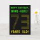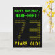 The front of this geeky, editable birthday card design features the messages "HAPPY BIRTHDAY" and "73 YEARS OLD!", along with a editable recipient name. The messages on the front have a pixelated, old school video game style appearance. The digits of the large number "73" on the front are themselves made up of smaller sized "7" or "3" digits, giving an ASCII art inspired look. The inside features a customisable birthday greeting message. A nerdy style, customisable birthday greeting card like this might be a special way to celebrate somebody’s seventy third birthday. [~Z0000366]