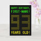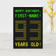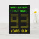 The front of this geeky, personalised birthday card design features the messages "HAPPY BIRTHDAY" and "93 YEARS OLD!", along with a personalised recipient name. The messages on the front have an appearance inspired by pixelated retro video games. The digits of the large number "93" on the front are themselves made up of smaller sized "9" or "3" digits, giving an ASCII art inspired look. The inside features a birthday greeting message that can be edited. A nerdy style, customised birthday greeting card like this might be a fun way to send a birthday message to somebody celebrating their 93rd birthday. [~Z0000366]
