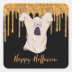 Fun Ghost Orange Glitter Halloween Square Sticker
