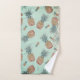 On this stylish towel set is a minty green backdrop with silver edging on the sides complete with shimmery pineapples. Fun glam vibes.