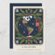 Fun Christmas card from new home illustrated with whimsical, retro globe with a vintage frame, holly and snowflakes. The caption reads "Merry Christmas from our new corner of the world" followed by your name(s) and the latitude and longitude coordinates for your new address. That said, all the wording is fully editable to personalise your holiday moving announcement as you wish.