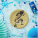 A fun design for a retiring fireman. The design has a yellow and gold dot background with a firefighter putting out a fire. The finishing touch for a great celebration.