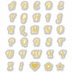 Fun gold colour font typography monogram text capital letters alphabet sticker pack for monogramming, personalising, customising, note writing, journals, notebooks, and more. This set also includes an exclamation point, heart, flower, and star.